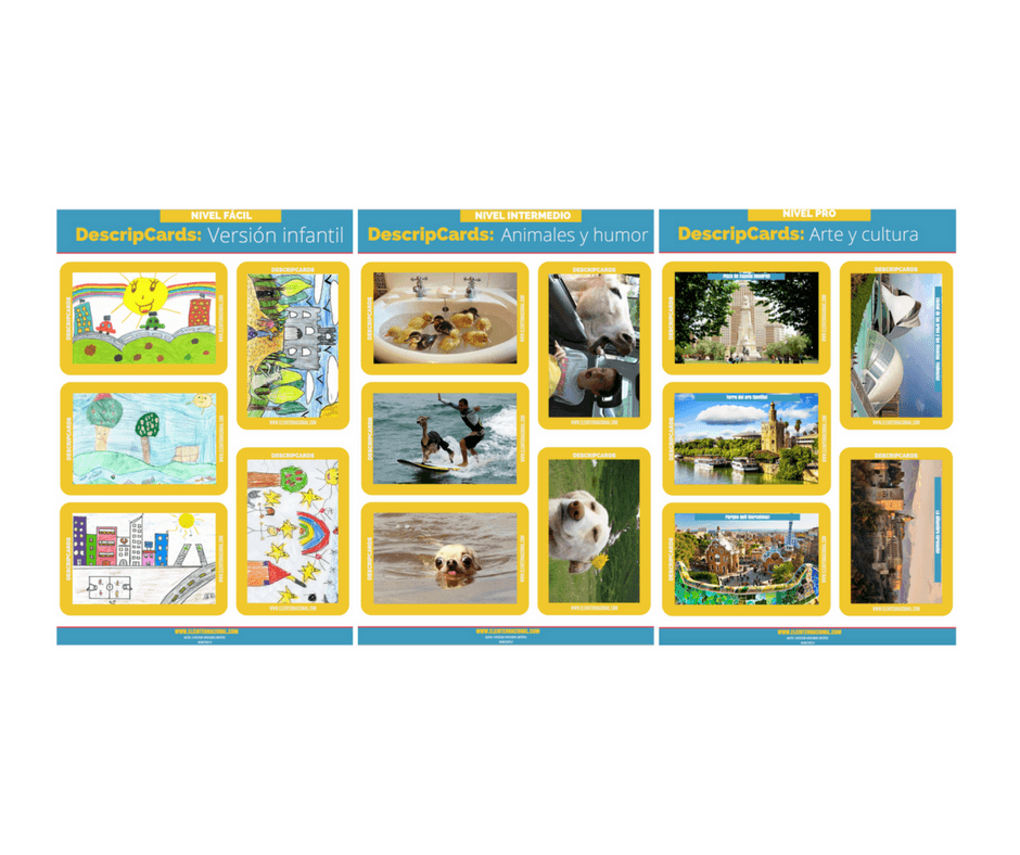 Cuando vi que esto funcionaba, me motivé e intenté invertir el rol de ver imagen – describir imagen pensando en los dictados de dibujos que hacía con los pequeños. Así que busqué una serie de imágenes, las imprimí y cree una especie de pictionary y de ahí estas nuevas DrescripCards os explico cómo jugar: