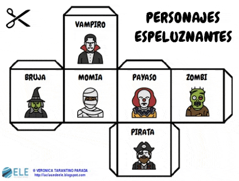 La actividad es muy sencilla y fácilmente adaptable, ya que se puede jugar de forma individual, en parejas o en grupo.  Básicamente consiste en tirar cada uno de los seis dados para que cada estudiante obtenga un elemento espeluznante esencial con el que crear su historia de miedo. Con los elementos que les han tocado, nuestros estudiantes tendrán que ingeniárselas para crear la historia de miedo más aterradora para el día de Halloween.