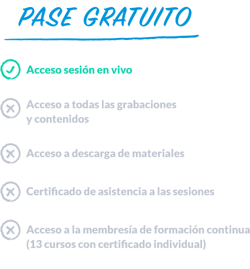 Las sesiones se llevarán a cabo en nuestra plataforma para todos aquellos que tengáis la membresía de formación continua. Con el pase gratuito tendrás acceso a las sesiones en vivo. Si tienes el pase premium todos los contenidos irán apareciendo cada mes en tu plataforma en tu curso, que aparecerá dentro de la sección Eventos. Aquí tienes el enlace de acceso a la plataforma: https://app.eleinternacional.com/